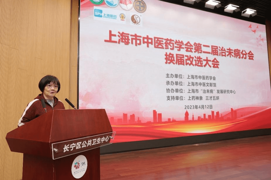 2023年4月12日下午,上海市中医药学会第二届治未病分会换届改选大会在长宁区公共卫生大楼第一会议室顺利召开。 上海市卫生健康委委员会副主任、市中医药管理局副局长、上海市中医药学会会长胡鸿毅,上海市中医药学会常务副会 长谈美蓉,以及来自全市医疗机构、高校、研究所、相关企业的220位代表出席了会议。