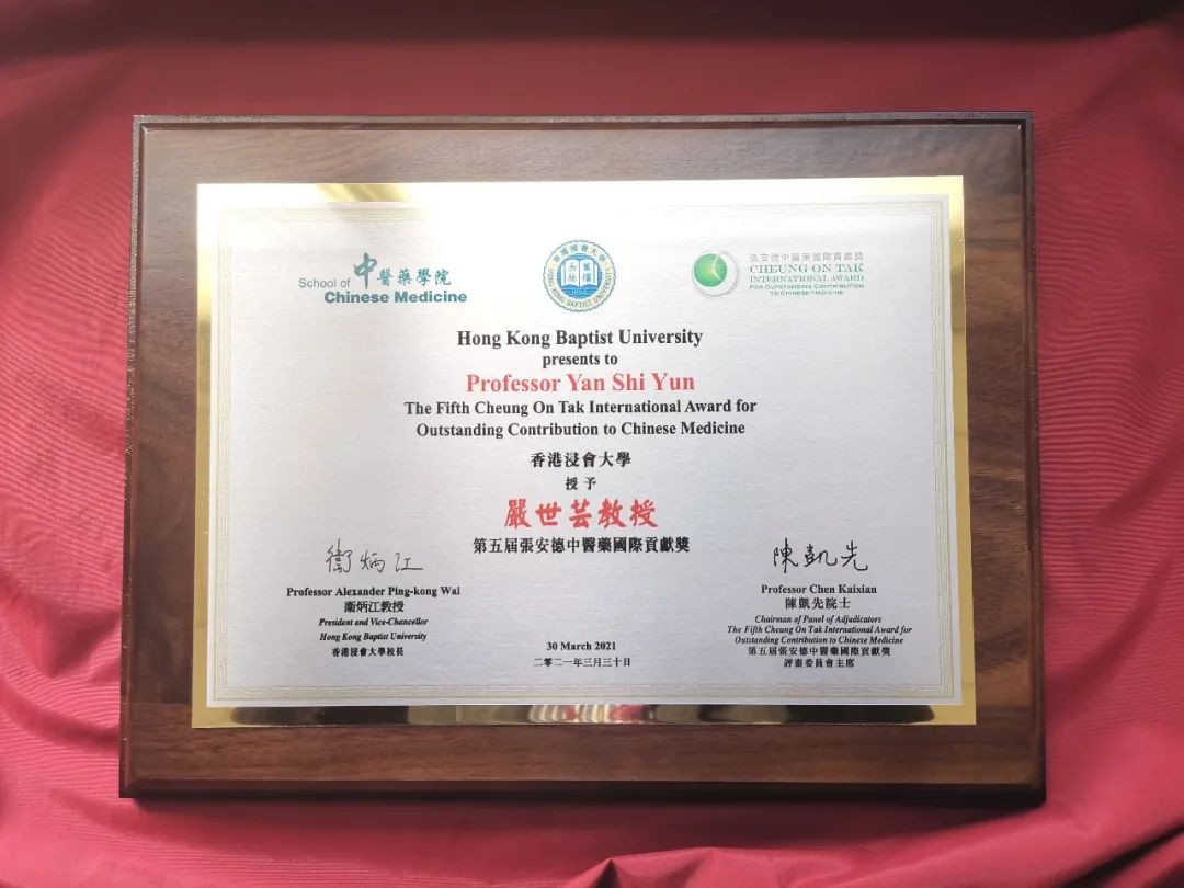 我会提名推荐的上海中医药大学终身教授严世芸获第五届张安德中医药国际贡献奖