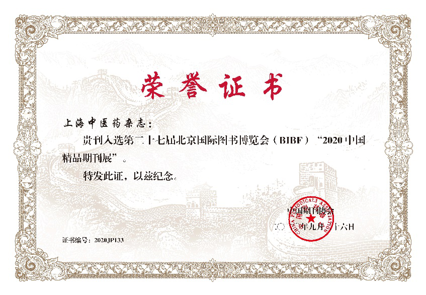 喜报!《上海中医药杂志》入选“2020中国精品期刊展”