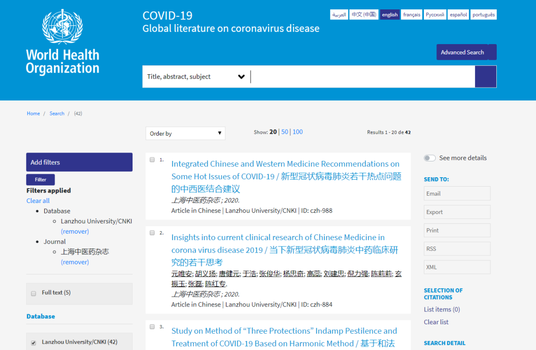 图2 世卫组织COVID-19数据库收录《上海中医药杂志》新冠肺炎论文