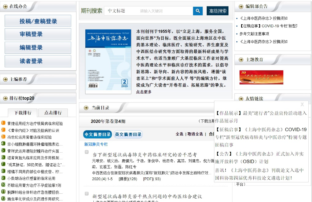 图3 《上海中医药杂志》官网“新冠肺炎专栏”展示