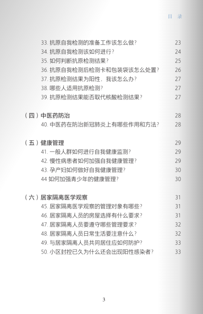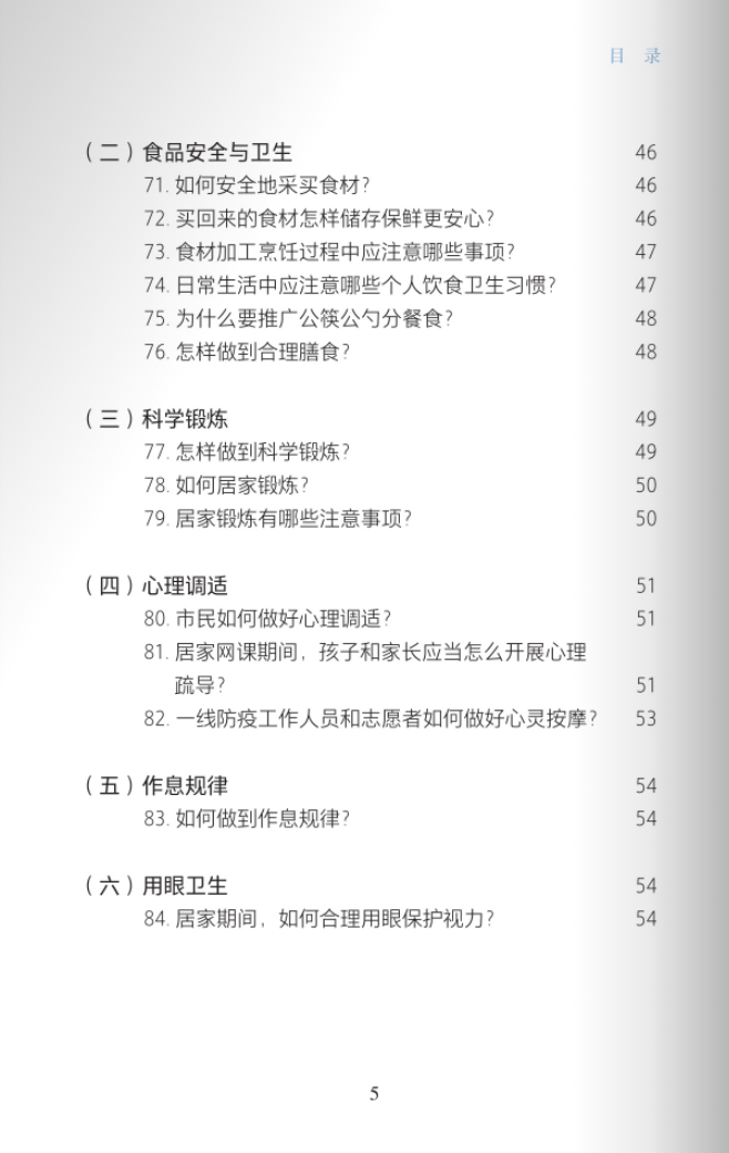 电子书涉及市民关心的100个问题,涵盖病毒知识、个人防护、疫苗接种、病毒检测、清洁消毒、食品安全、科学锻炼、心理调适、健康管理、出行防护、中医药防治、居家隔离医学观察等防疫要点,从新冠病毒的基础知识到病毒检测的不同方法,从居家清洁的细节要点到预防消毒的注意事项,从日常起居的方方面面到调适身心的点点滴滴。