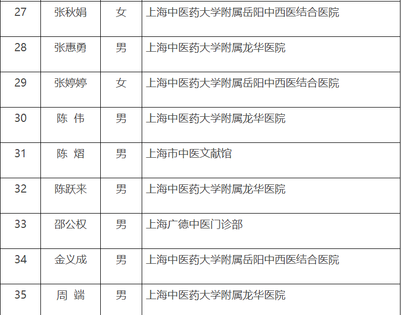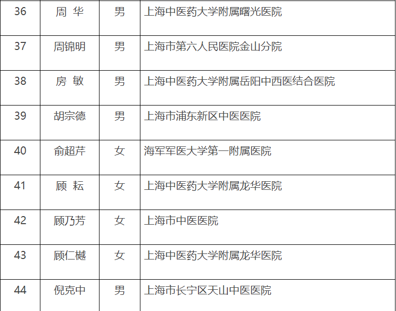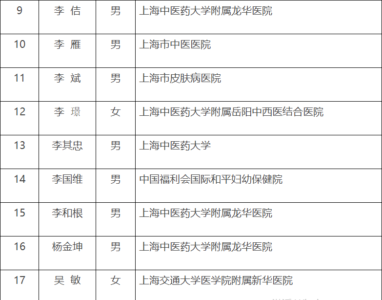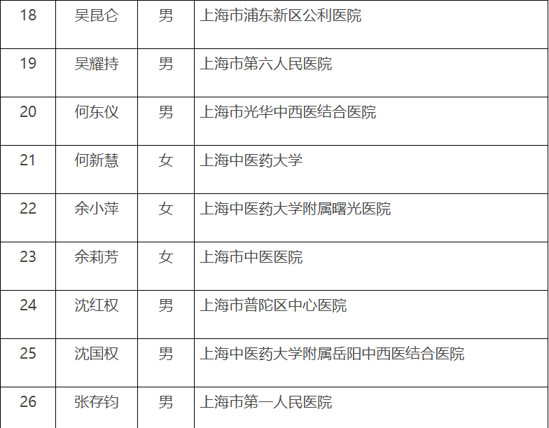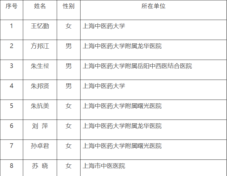 第五届“上海市名中医”名单