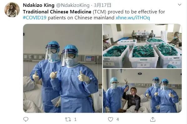 坦桑尼亚网友Ndakizo king说:在中国,中医药已经被证明可以有效治疗新冠肺炎患者。