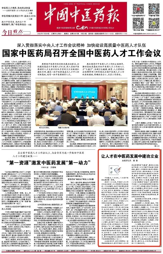 【中国中医药报时评】让人才在中医药发展中建功立业
