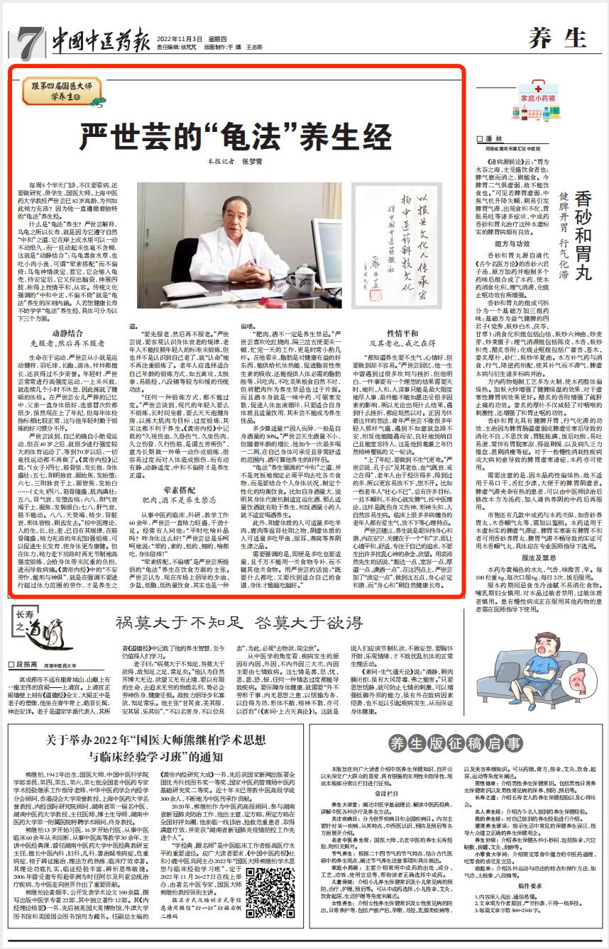 【跟第四届国医大师学养生⑭】严世芸的“龟法”养生经